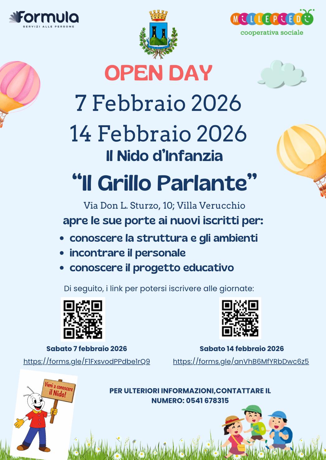 Il Comune di Verucchio informa le famiglie che dal 5 febbraio al 6 marzo 2026 saranno aperte le iscrizioni al Nido d’Infanzia Comunale “Il Grillo Parlante”, situato a Villa Verucchio, per l’anno educativo 2026/2027.
